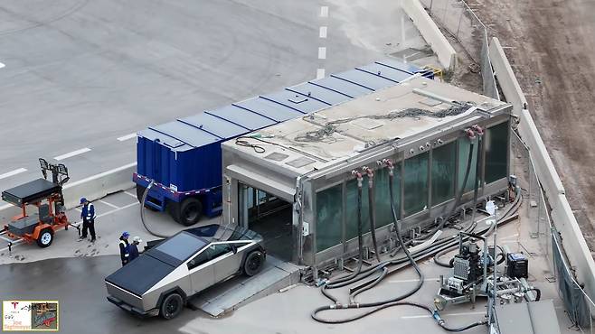해당 유튜브 채널은 사이버트럭을 생산하는 기가텍사스에 대한 새로운 내용을 게시해오고 있다. 최신 영상 중 하나는 테슬라 완성차의 누수 테스트를 수행하는 ‘레인메이커(Rainmaker)’를 보여준다.
