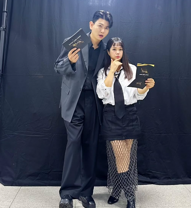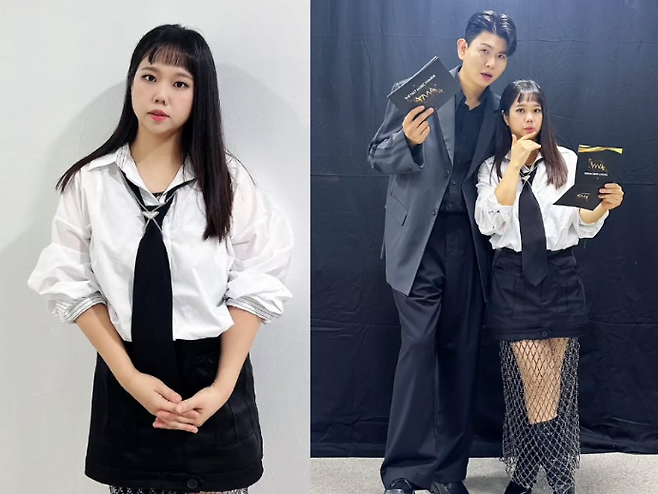 홍현희는 오늘 화이트 셔츠에 넥타이를 매치해 보이시한 무드를 완성한 스타일을 선보였습니다. 하의는 블랙 미니스커트를 착용했고, 그 위에 망사 레이어드를 더해 유니크하고 세련된 느낌을 더했습니다. 이 스타일은 그녀의 자신감 넘치는 매력과 동시에, 여성스러운 매력을 잘 드러냈습니다.