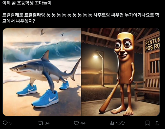 트랄랄레로 트랄랄라랑 퉁퉁퉁 사후르랑 싸우면 누가 이김?