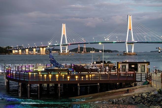 해 질 녘 노을이 특히 황홀한 분위기를 연출하며 스카이워크의 규모가 아담하지만 밤에 화려하게 빛나는 하늘고래 모형과 함께 예쁜 사진을 남길 수 있어요. 영흥대교와 하늘고래를 배경으로 로맨틱한 분위기를 연출해 보세요.