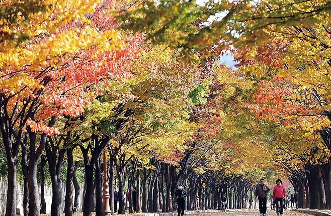 특히 부소산성은 잘 보존돼 있는 숲이 자랑거리다. 부소산은 도심에서 그리 멀지 않고, 정상의 해발고도가 100m도 채 되지 않은 야트막한 산이라 누구나 쉽게 다녀올 수 있다. 단풍놀이에 역사기행을 덤으로 즐길 수 있다.