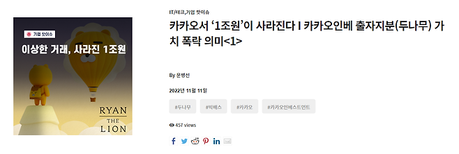 “카카오는 손실(약 1조원)이 뻔히 예상됨에도, 왜 이런 불필요해 보이는 그룹 내부 거래를 통해 대규모 손실을 2022년 4분기에 내려고 하는 걸까요?”
