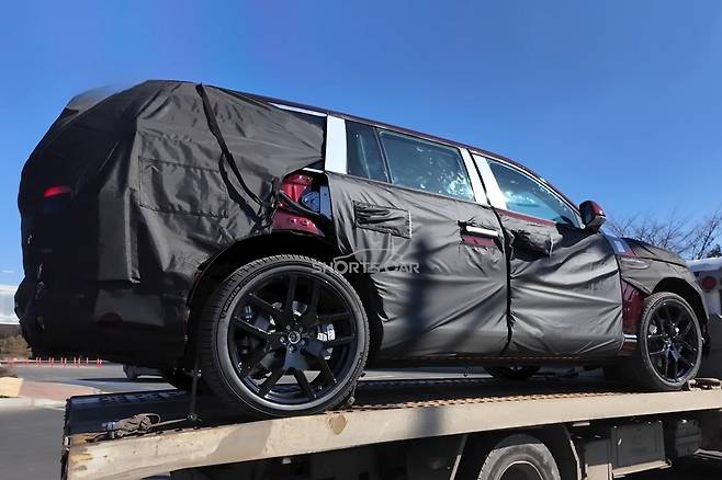 앞서 몇 차례 프로토타입이 목격된 데 이어, 최근 국내에서 코치 도어 사양이 적용된 GV90 프로토타입이 최초로 포착되어 화제에 올랐다. 이미지를 통해 보더라도 거대한 차체 크기를 지니고 있는 점이 확인되며, 전장 길이만 5,200mm를 넘어설 것으로 예상되고 있다. 자세한 모습을 살펴보면, 전면부에는 다른 제네시스 신차들과 동일하게 MLA 타입의 두 줄 헤드램프가 탑재된다.