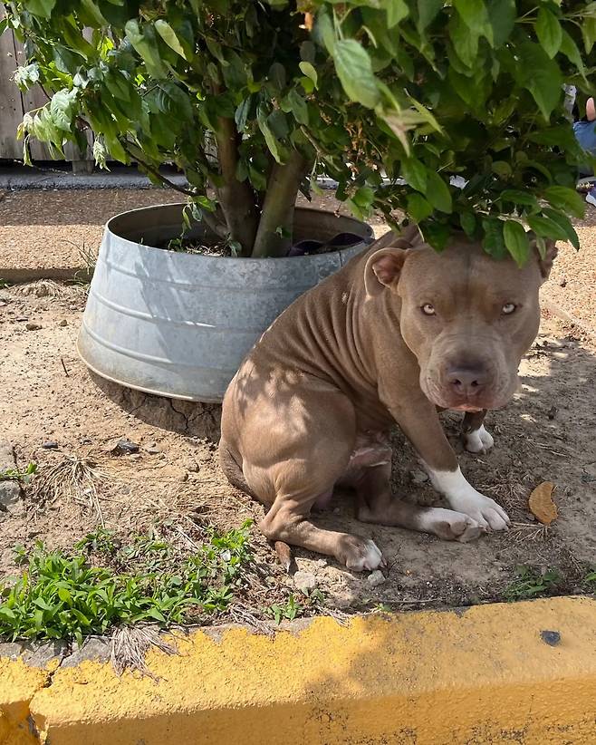 보호소 직원들이 보호견을 산책시키던 중, 보호소 뒤편 매그놀리아 나무에 묶인 또 다른 개를 발견했다.