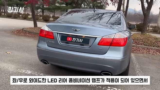 그리고 후면부 또한 전체적으로 중후한 멋이 느껴지는데, 좌우로 와이드한 LED 리어 콤비네이션 램프가 적용되어 있으면서 초창기 제네시스의 감성을 물씬 풍겨주는 것 같습니다. 하단부에 있는 듀얼 머플러가 후면부 디자인에서 약간의 날렵함을 조금 더 가미해주고 있습니다.