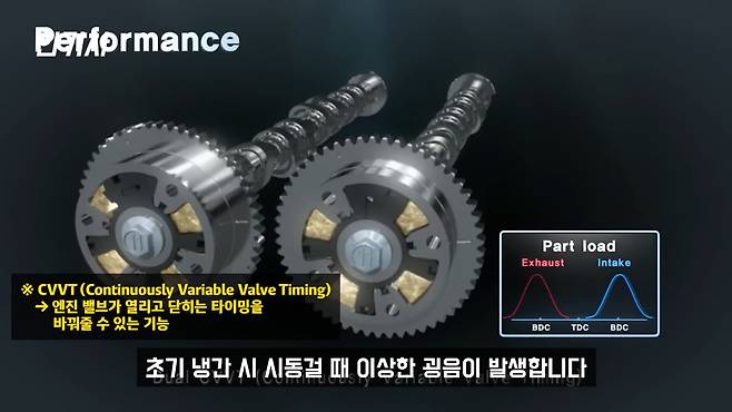 다음 장점으로는 몇 가지 고질병이 있긴 하지만 큰 이슈 상황은 없다는 점입니다. 그 이슈는 CVVT 문제인데, 초기 냉간시 시동할 때 이상한 굉음이 발생합니다. 이 문제는 실제 중고차를 구매하시는 분 같은 경우에 시동을 걸면 바로 알 수 있는 부분이기 때문에 큰 문제는 아니라고 생각합니다.