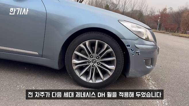 기본 BH330은 기본 17인치 휠이 적용되어 있고, 기본 BH380으로 올라가게 되면 18인치 휠이 적용되어 있습니다. 지금 이 차량은 다음 세대 제네시스 DH 휠을 적용한 18인치 휠이 적용되어 있습니다.