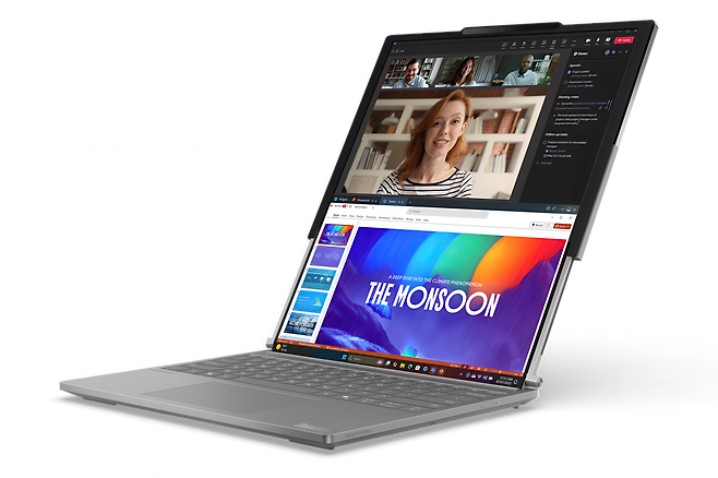 예전에 일명 ‘상소문 폰’을 개발했던 LG를 기억하실 겁니다. 그 기술의 핵심에는 돌돌 말 수 있는 초박형 OLED 패널이 있는데요. 이 기술을 활용한 노트북이 등장했습니다. 레노버의 씽크북 플러스 6세대 롤러블 AI PC(이름 무지하게 기네요)는 말려 있을 때는 평범한 14인치 노트북으로 보이지만, 위로 펼치면 화면 면적을 두 배 늘린 16.7인치까지 늘어나요. 화면을 펴고 접는 것은 손바닥 제스처로도 할 수 있습니다. 손바닥을 인식시킨 다음, 위나 아래로 움직여서 화면을 펼치거나 말 수 있는 것이죠.