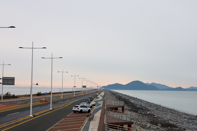 1991년 11월 첫 삽을 뜬 이후 20년에 걸쳐 완성된 이 방조제는 총길이 33.9km로 세계에서 가장 긴 방조제로 기네스북에 등재되며 ‘한국의 바다 위 만리장성’이라는 별칭까지 얻었습니다. 겨울 햇살이 차갑게 반사되는 바다와 드넓은 담수호 사이를 일직선으로 가로지르는 이 길은 그 자체만으로도 웅장한 경험이 되어 여행자들의 마음을 사로잡습니다.