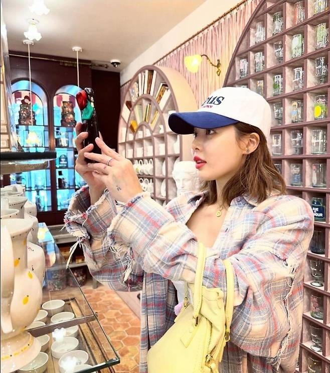 또, 현아는 체크 패턴의 셔츠를 착용해 수수하고 힙한 분위기를 자아냈습니다.
