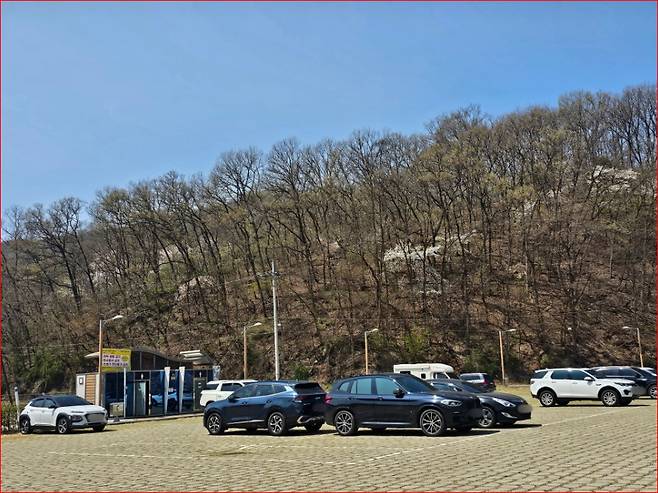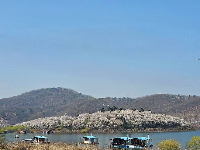 벚꽃섬의 아름다움을 보다 느긋하게, 긴 호흡으로 감상하고 싶다면 낚시터 반대편에 위치한 ‘초평호 다목적 광장’ 주차장을 추천합니다.