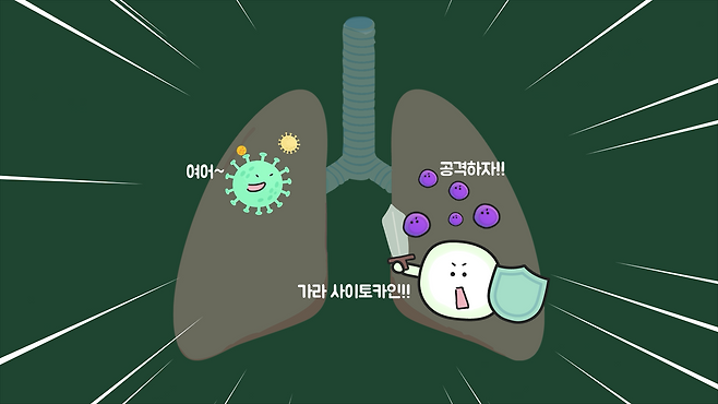 그런데 사이토카인을 너무 많이 만들어내면 면역 과민 반응이 일어나 심각한 염증이 생기고 폐에 체액이 쌓여 죽게 됩니다. 이 때문에 면역 시스템이 활발하게 작동하는 젊은 층에서 사망률이 유독 높았던 겁니다.