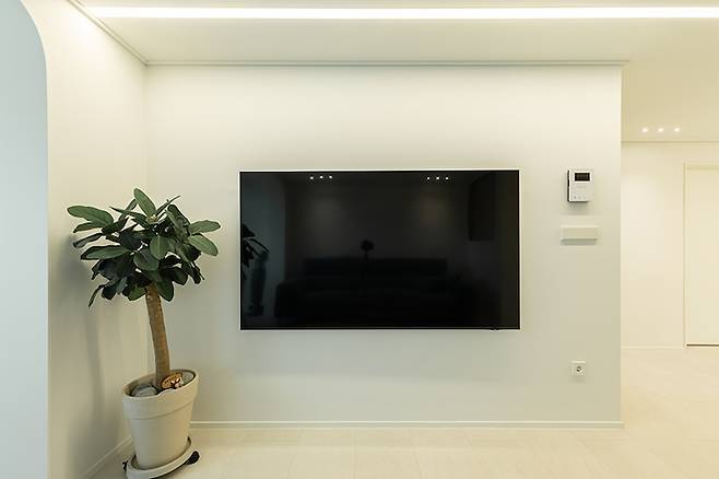 TV 벽은 브라켓 매립을 할 수 있도록 가벽을 형성하였고요. 그리고 가벽을 시공하면서 스위치 콘센트도 인기 많은 유럽형 스위치로 설치했습니다.