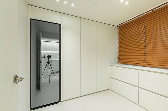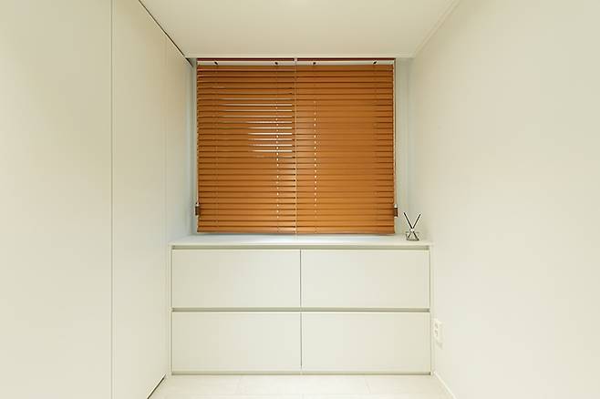 창가에는 서랍장을 시공하여 수납을 드레스룸에서 모두 해결할 수 있도록 하였습니다.