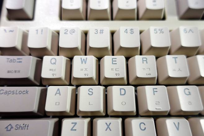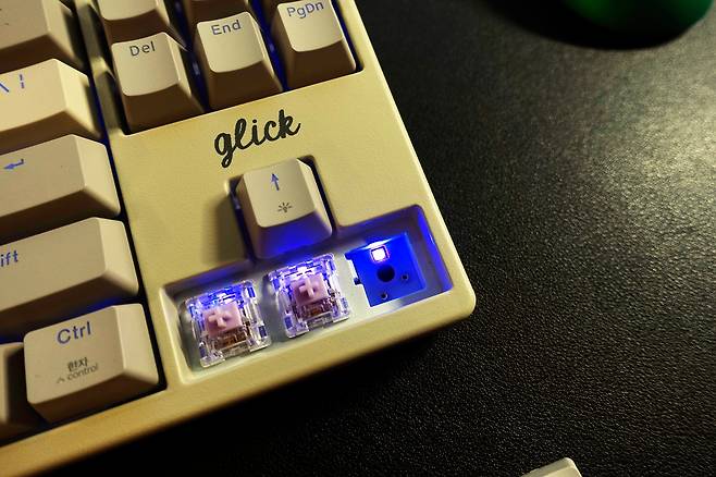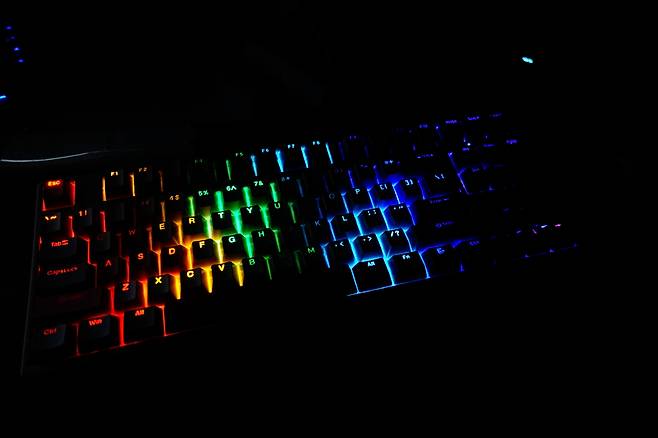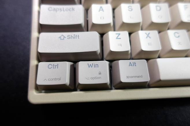 스위치 축 뿐만 아니라 키캡까지도 교환이 가능합니다. 오 분위기 많이 바뀌어요 게임용으로 중점 사용하게 된다면, 타건이 많은 키에 대해서는 키캡을 교체해서 시인성을 높이는 것도 좋습니다.