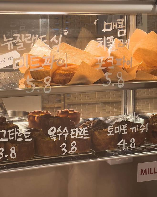 '밀가루'는 아침에 갓 구운 소금빵으로 인기가 있는 곳이다. 이곳의 시그니처는 후추빵이며 후추빵은 은은한 버터의 향에 알싸한 후추 특유의 맛이 돋보인다. 이외에도 뉴질랜드식 미트파이와 크리미한 마쉬룸 치킨파이, 전통 포르투갈식 에그타르트, 옥수수 타르트 등이 있다.