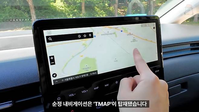 안드로이드 OS를 품은 10.25인치 인포테인먼트 화면은 각종 정보를 깔끔하게 전달했고 순정 내비게이션은 T맵이 탑재됐습니다. 애플 카플레이와 안드로이드 오토 같은 폰 커넥트 시스템도 무선으로 지원하는데 결국 우리는 T맵을 쓰기 위해 이걸 켜는 것이니 그냥 순정 내비를 이용하는 편이 나았습니다.
