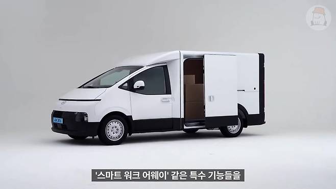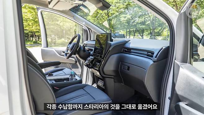 생김새에서도 짐작되듯 실내는 스타리아와 동일하게 구성했습니다. 전자식 변속 버튼과 터치식 인포테인먼트, 각종 수납함까지 스타리아의 것을 그대로 옮겼어요. 하지만 이 차가 상용차이니만큼 장갑을 낀 상태로 운전하는 일이 자주 있을 텐데 터치 패널을 그대로 쓴 점은 조금 아쉬운 지점이었습니다. 예전 쌍용 티볼리처럼 터치 패널인 척하는 물리 버튼이라도 넣어주면 좋았을 텐데요.