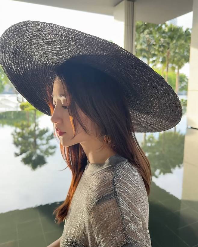 특히 이 룩에서 가장 눈에 띄는 포인트는 챙이 넓은 블랙 선햇으로 햇살을 가려주는 실용성과 동시에 그녀의 얼굴을 더욱 작고 우아하게 보이게 하는 효과를 더했습니다.