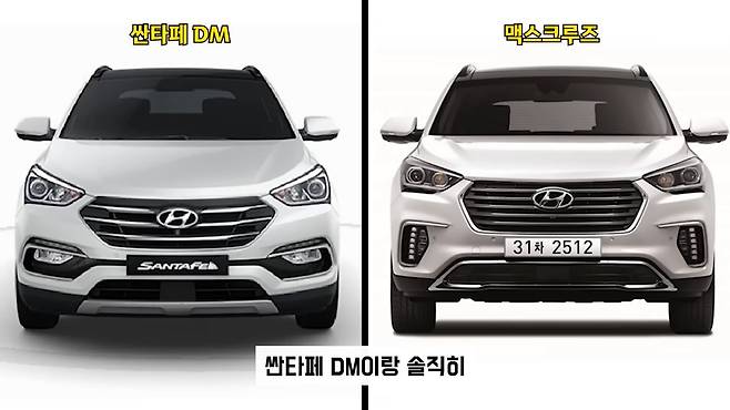 1세대 싼타페 DM이랑 초창기 맥스크루즈 전면부가 좀 많이 닮았었는데, 맥스크루즈가 페이스리프트 되면서 조금 달라졌다고 생각합니다.