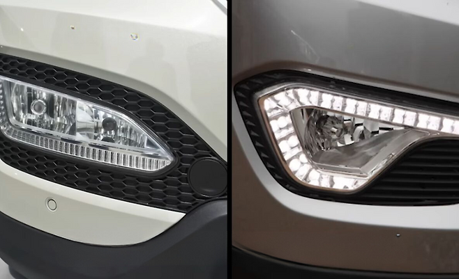 싼타페 DM은 전면부 그릴 가로줄이 3개로 되어 있는데 맥스크루즈 전기형은 가로줄이 4개였고, 이 차량으로 페이스리프트가 되게 되면서 가로줄이 5개로 바뀌었어요. 또 맥스크루즈 전기형은 싼타페 DM과 안개등도 굉장히 비슷했어요. 하지만 후기형으로 페이스리프트가 되면서 세로 형태의 LED 안개등으로 바뀌었기 때문에 그나마 좀 차이를 주려고 노력을 했고요.
