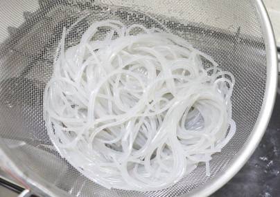 당면 50g을 불려 준 뒤 삶아 준 다음 찬물에 헹궈 잘게 썰어줍니다. 당면 50g을 불리면 200g 정도가 됩니다.