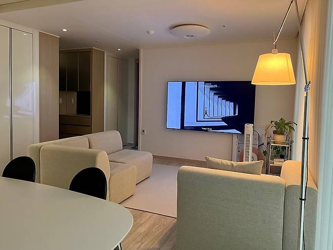 집들이를 읽어주시는 고마운 분들께 막간을 이용해 Tip을 하나 드리자면, 지내다 보니 4K UHD 콘텐츠들이 아직 많지 않은 것 같아요. OTT는 대부분의 콘텐츠가 HD 화질이고, 유튜브도 유료 영화를 구매하고 보더라도 1080p HD 화질이더라고요. 저희는 빛 반사 때문에 올레드 TV 구매했지만 다시 돌아간다면 TV 화질은 보통으로, 사이즈는 더 크게 할 생각이에요. 모두 참고하시면 좋을 것 같아요!