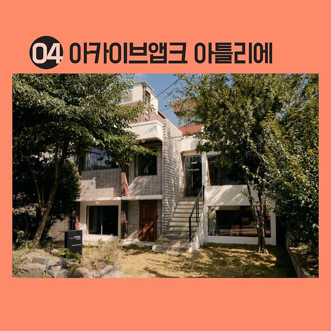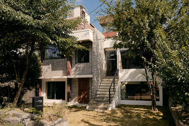 성수동 내 푸른 나무들 사이 2층짜리 단독 주택으로 이루어진 집과 업무 중간 느낌의 아틀리에는