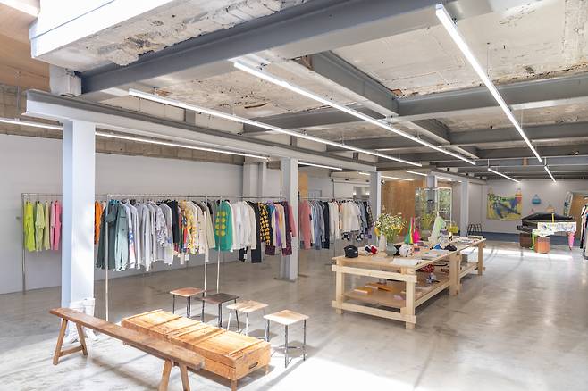 1층과 2층으로 구성된 매장은 자체 브랜드 유스(youth)의 다채로운 제품들을 꾸려졌어.