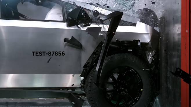 테슬라가 20일 공개한 사이버트럭의 실제 충돌테스트 영상이 주목받고 있다. 미국 도로교통안전국(NHTSA) 테스트에서 최고등급을 기록한 데 이어, 차체 구조의 혁신성까지 입증됐기 때문이다.