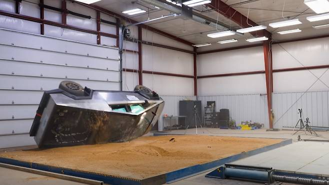 이번에 공개된 충돌테스트 영상은 2024년형 사이버트럭 사이버비스트 모델의 실험 장면이다. 시속 56km로 콘크리트 벽에 정면 충돌하는 상황에서도 차체 프레임과 실내 안전공간이 견고하게 유지됐다.