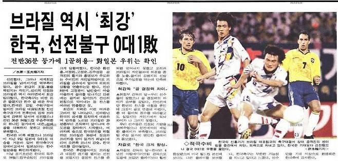 이후 한국은 브라질과 5번을 더 만났다. 결과는 5전 전패. 가장 아쉬웠던 순간은 2002년 월드컵 직후 5개월만이었던 2002년 11월 서울에서의 격돌이었다. 당시 한국은 설기현과 안정환의 골로 선전했지만 2대3으로 졌다.