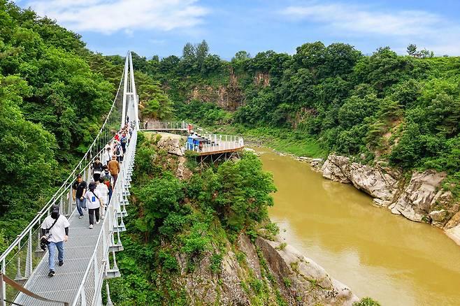 이 잔도길의 정점에는 ‘주상절리교’가 있다. 하늘을 가르듯 우뚝 솟은 절리 사이를 가로지르는 이 다리는 걷는 것만으로도 짜릿함을 안겨준다.
