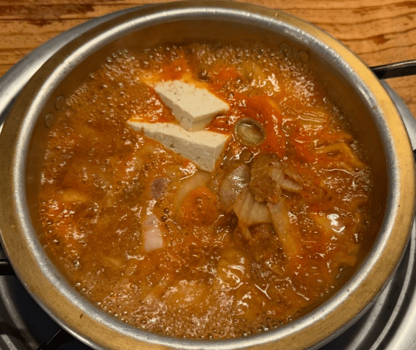 육수는 재료가 충분히 볶아진 뒤에 붓고, 보글보글 끓기 시작하면 중약불로 줄여 15~20분 정도 은근히 끓여주는 것이 포인트다. 이 시간 동안 재료에서 우러나오는 맛이 육수에 잘 배어들며, 김치찌개의 기본 풍미가 완성된다.