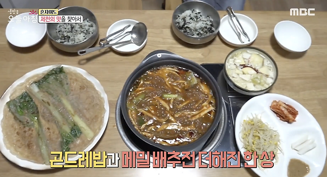 팔팔끓는 등갈비찜에 콩나물을 넣고, 배추전에 쌈을 싸먹으면 최적의 맛으로 즐길 수 있습니다.