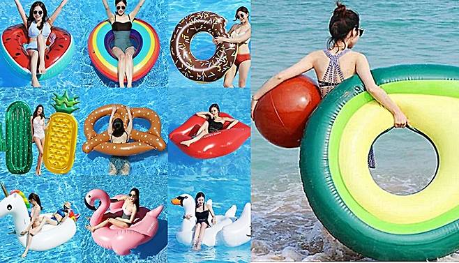 피서객들의 여행 가방에 필수로 들어간다는 주인공은 바로 대형 튜브인데요. 물놀이계의 인싸템이라는 대형 튜브는 몇 년 전 홍학 모양의 튜브가 인기를 끌기 시작하더니 최근에는 유니콘, 백조, 아보카도, 피자 등 그 모양도 다양합니다.
