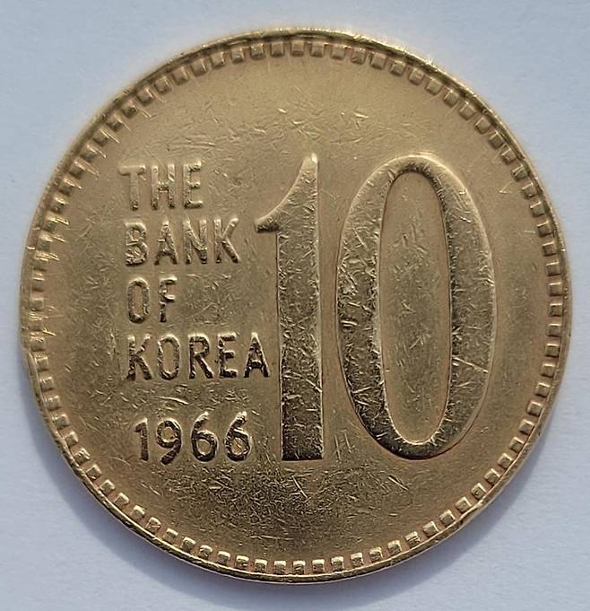 10원의 최초 발행년도인 1966년 동전은 약 100만 원 이상, 보통 110만 원 선에서 거래된다.