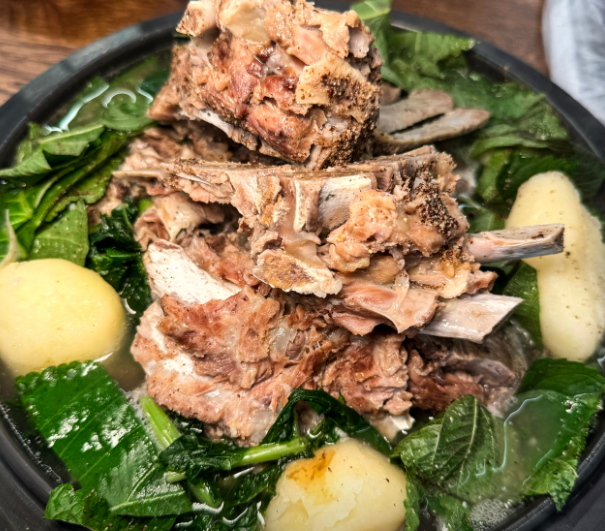 진하게 우려낸 국물에 푸짐한 고기와 수제비가 포함된 감자탕. 깔끔하면서도 담백한 맛으로 해장 메뉴로도 추천돼요.