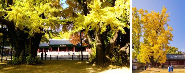 서울 관광지로 유명한 성균관 문묘에는 약 400년을 살아온 문묘 은행나무있는데요. 지리적으로도 방문하기 쉬우며, 성균관 명륜당의 기와 지붕의 곡선 과 함께 사진을 찍으면 매우 아름다운 사진이 찍히기 때문에 가을이 되면 담장 앞 포토존에서 사진을 찍으려 하는 사람들을 볼 수있습니다.