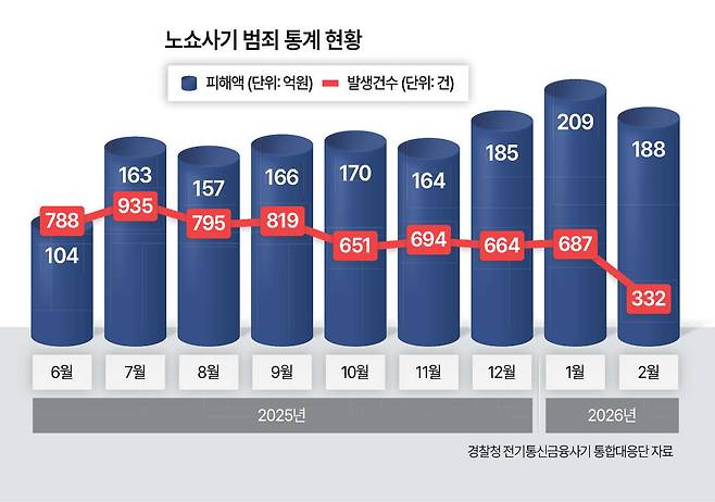 경찰청 전기통신금융사기 통합대응단 노쇼 사기 범죄 통계 현황에 따르면 지난해 발생한 노쇼 사기는 7534건·피해액은 1653억원에 달했다. 지난해 상반기 147억원 수준이던 관련 피해 규모는 하반기 들어선 1500억원으로 폭증했다. 올해 들어선 1월 687건(209억원), 2월 332건(188억원)이 보고됐다.