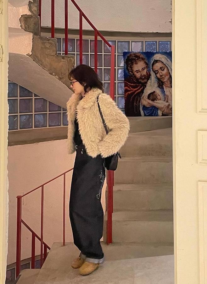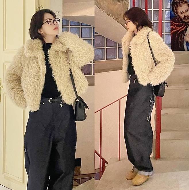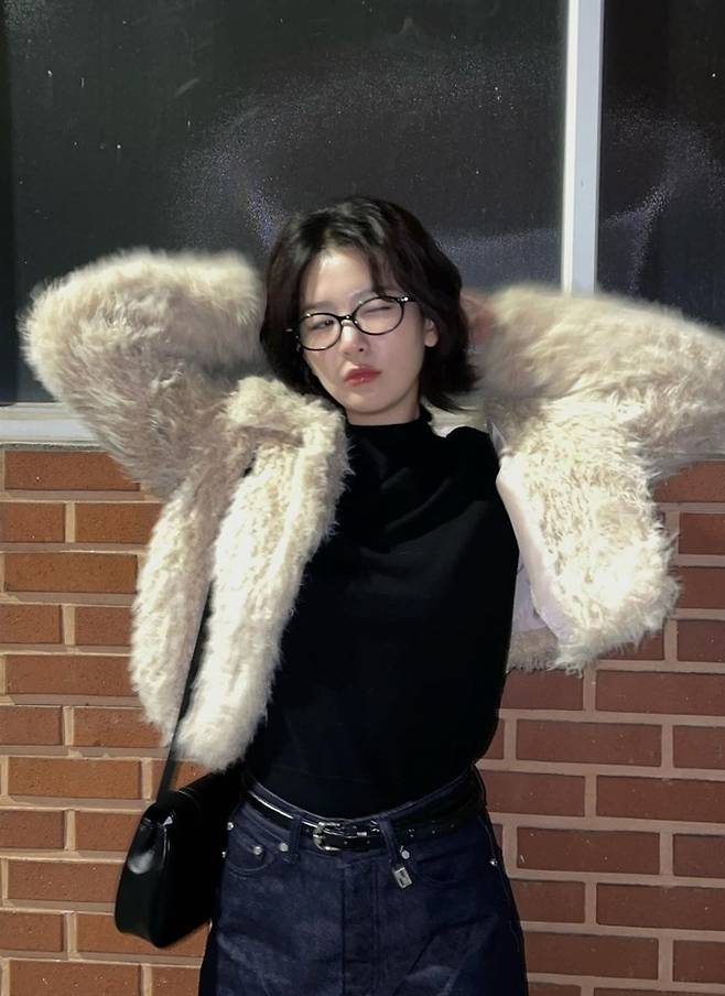 공개한 사진에서 슬기는 최근 짧게 자른 헤어 스타일에 통이 넓은 롤업 팬츠를 입고 복슬복슬 따뜻한 퍼 재킷을 매치한 외출룩으로 힙하면서도 귀여운 스타일을 완성했다.