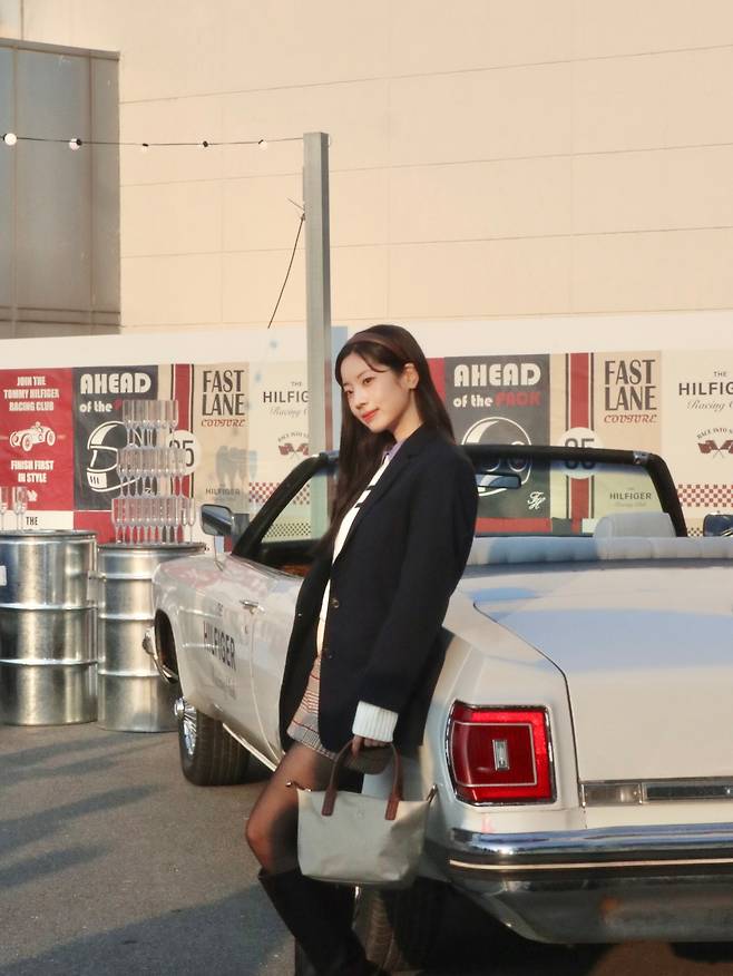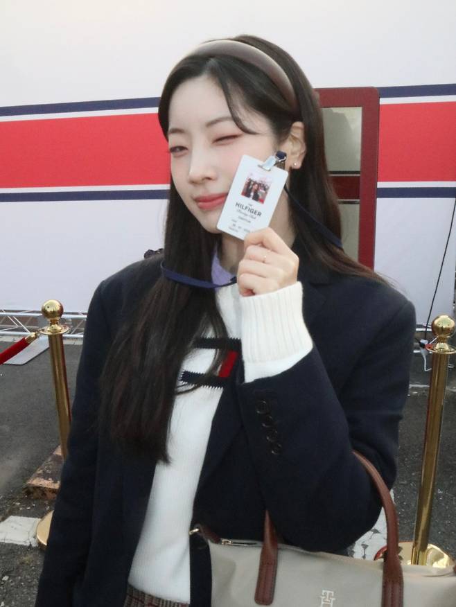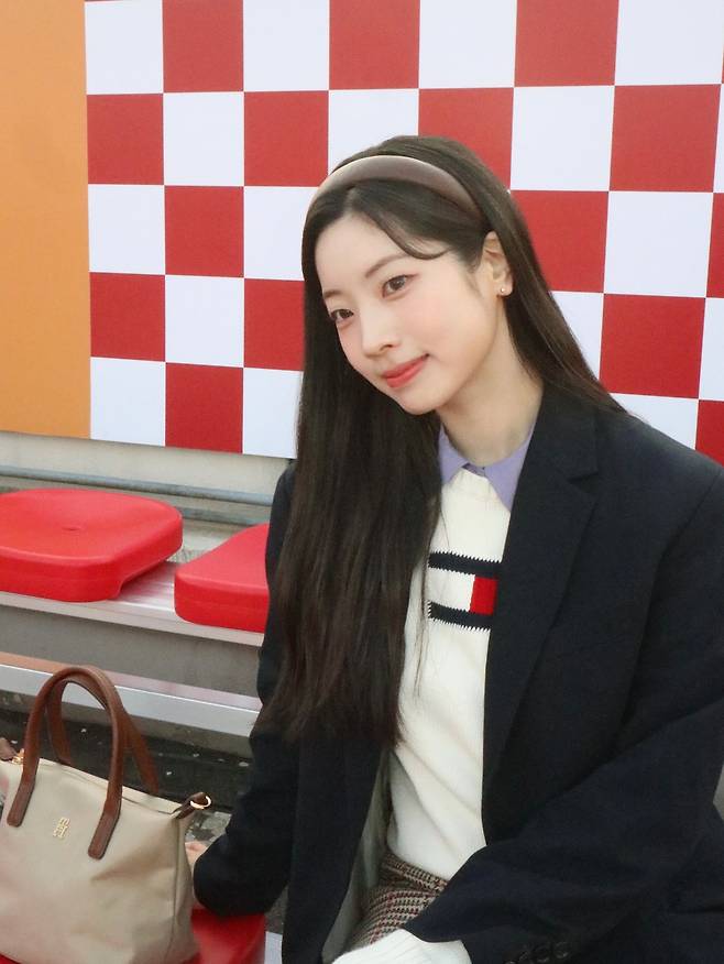 촉감이 느껴질 만큼 포근해 보이는 니트 소매와, 체형을 자연스럽게 따라 흐르는 블레이저가 다현의 부드러운 표정과 찰떡 궁합이었어요.