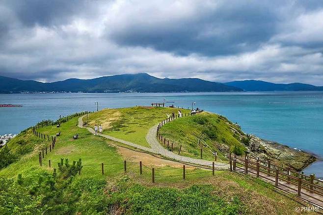 거제도의 상징적인 스폿인 바람의 언덕은 큰 언덕 위를 부는 시원한 해풍과 광활한 푸른 바다가 어우러져 마치 유럽 해안마을에 와 있는 듯한 기분을 선사합니다. 꼭대기까지 걸어 올라가는 길은 비교적 완만해, 가벼운 운동화만 신어도 편하게 산책할 수 있습니다.