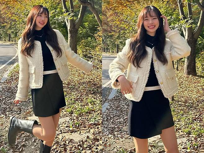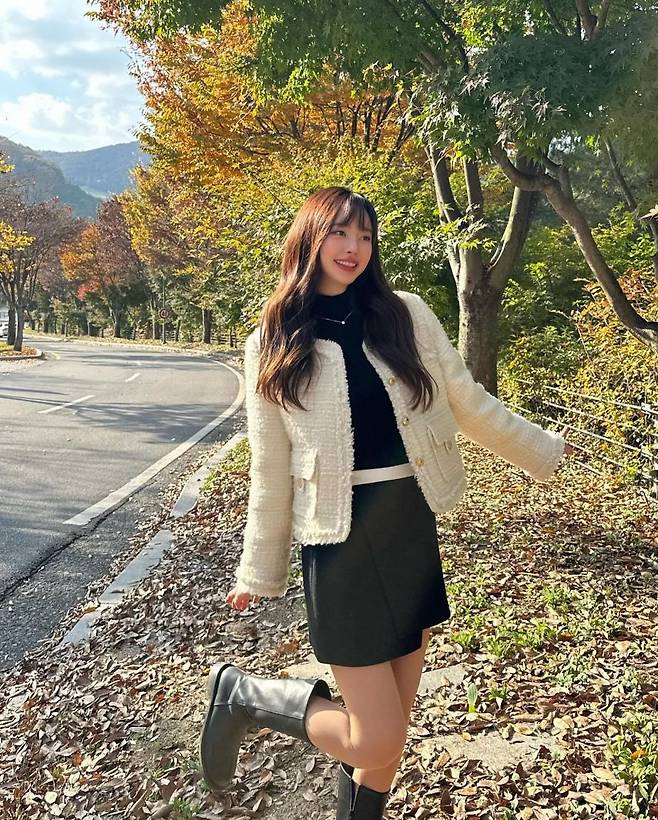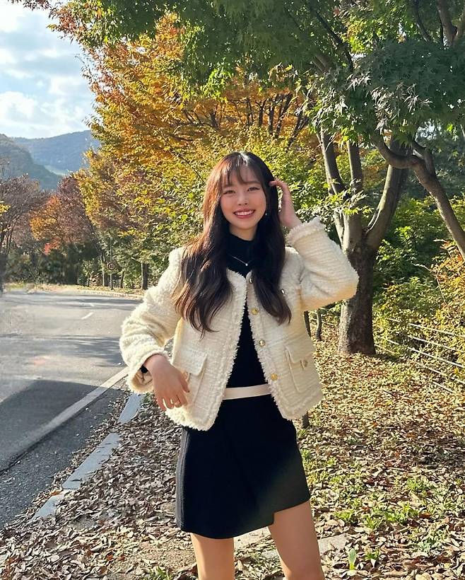 공개된 사진 속 진세연은 미니스커트에 트위드 재킷을 걸치고 사랑스러운 여친 룩을 선보이고 있다. 단풍이 든 가을 풍경을 배경으로 발랄한 포즈를 취하며 미소를 지어보이고 있다.
