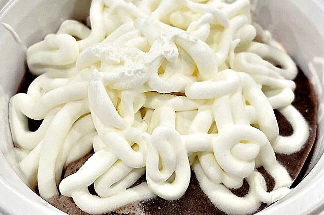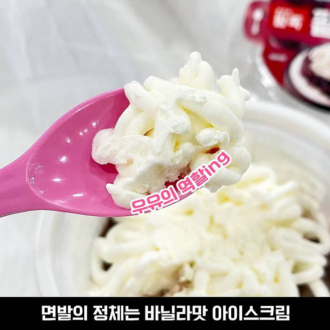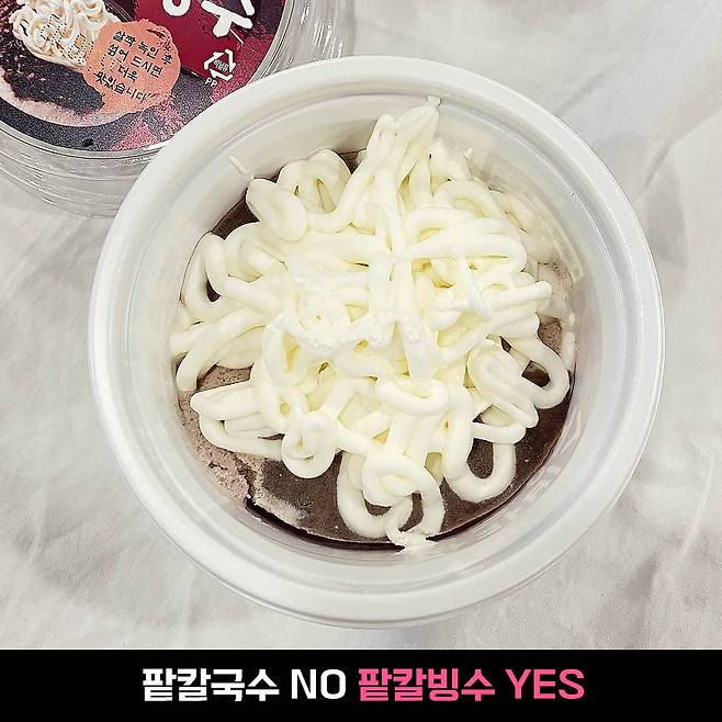 면발의 정체는 다름 아닌, 바닐라맛 아이스크림이었습니다아. 팥칼빙수는 냉동고에서 꺼내고 살짝 녹은 상태로 섞어 먹는 게 맛있다고 해서, 5분 정도 기다린 1인.