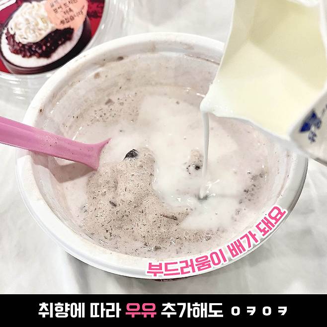 취향에 따라 우유를 추가해 먹어도 좋아요. 밥심은 좀 더 부드럽게 먹기 위해 우유를 투척했구요. 결과는 역시는 역시였다..ㅋㅋㅋ