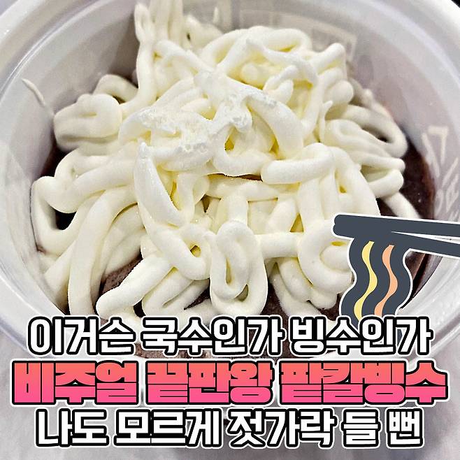 팥빙수라는 말을 따로 안 들었다면, 칼국수로 착각할만한 모양 아니냐구요. 그야말로 인증샷을 부르네요. 신박 그 자체라는..★