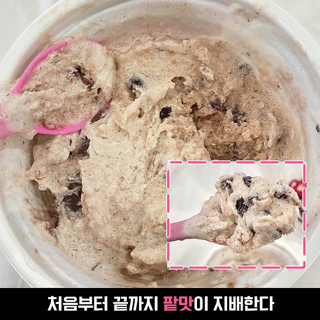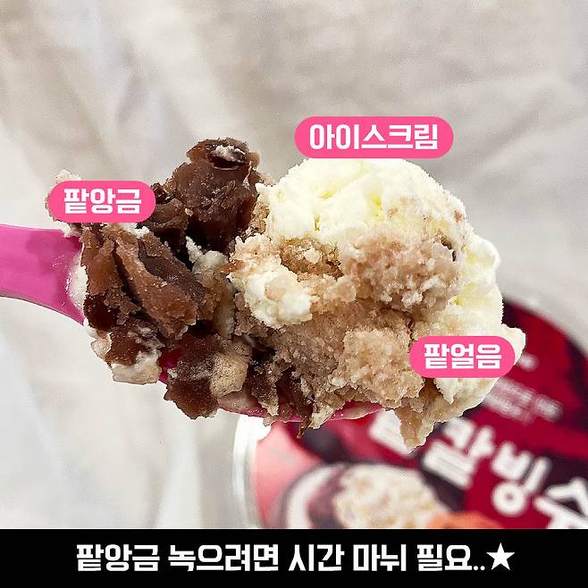 완전히 섞기 전 팥앙금과 아이스크림, 팥얼음을 한 자리에 모아봤어요. 이번 GS 칼팥빙수의 주요 재료이자 전부인(!!) 맛 구성이기도 해요.