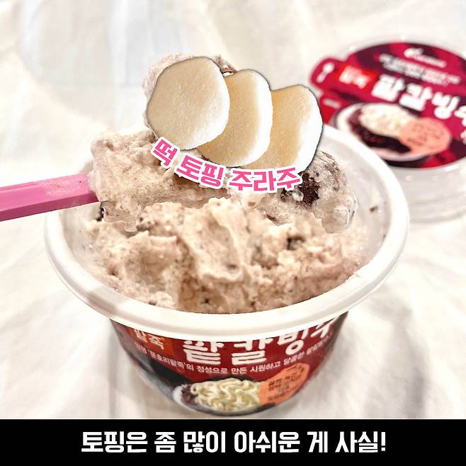 그도 그럴 게 상대적으로 더 가격이 저렴한 다른 편의점 빙수 제품에 떡이 들어가는 걸 봐서 그런가, 더 아쉬움이 큰 것 같네요. 그것만 아니라면 별이 2개반이 아니라 4개가 되었을지도 몰라요. 리얼 ‘팥’만 들어간 빙수를 즐기고 싶다면 추천할게요~