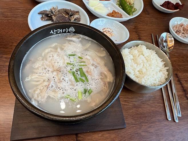 얼큰애호박국밥이 궁금했지만 배탈이 났던 관계로 산더미 특 돼지국밥을 주문했어요